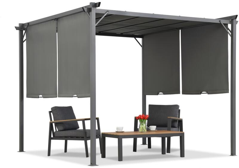 Garden Point Antracit Sevilla 3x3m terasz pergola Garden Point függönyökkel (GAP1244)