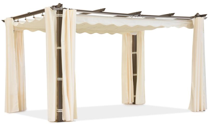 Garden Point Barbados terasz pergola 3x4 m Garden Point fa-bézs színű függönyökkel (GAP1344)